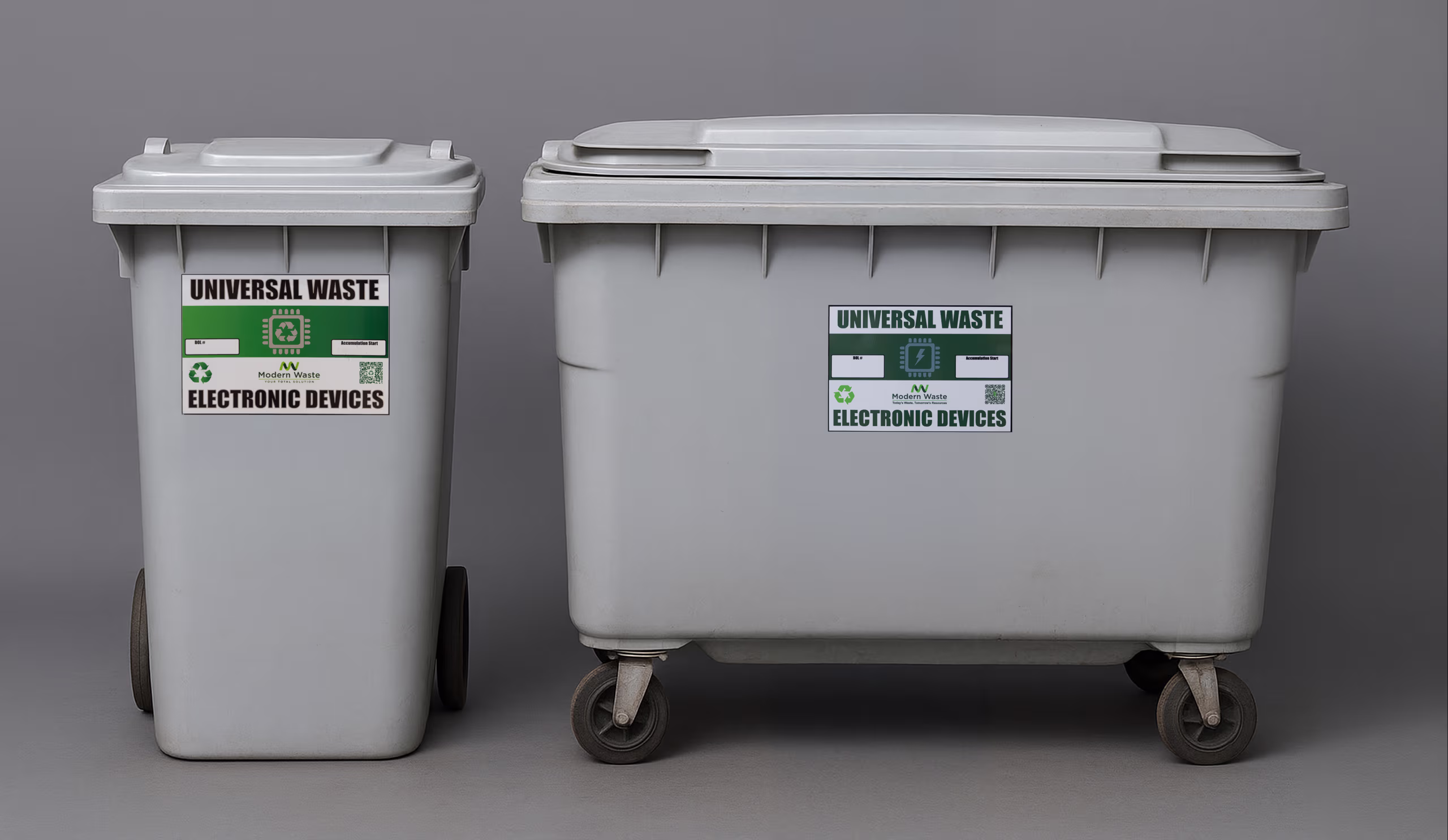 We provide clearly labeled, tamper-resistant containers to ensure safe and compliant collection of electronic waste and batteries at your location.