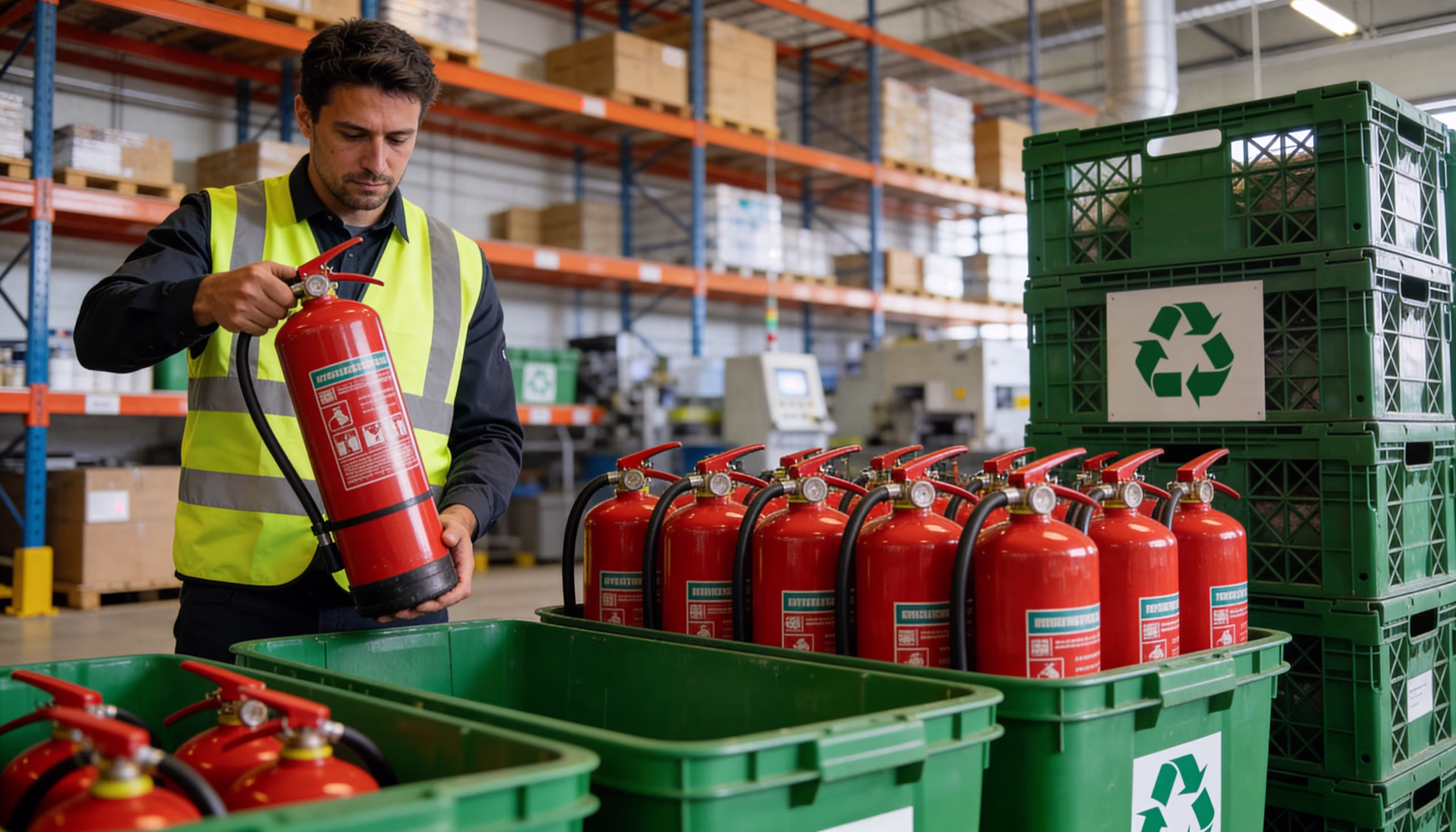 Compliant fire extinguisher recycling in California. We safely dispose of expired, damaged, and commercial fire extinguishers with certified handling and environmental compliance.